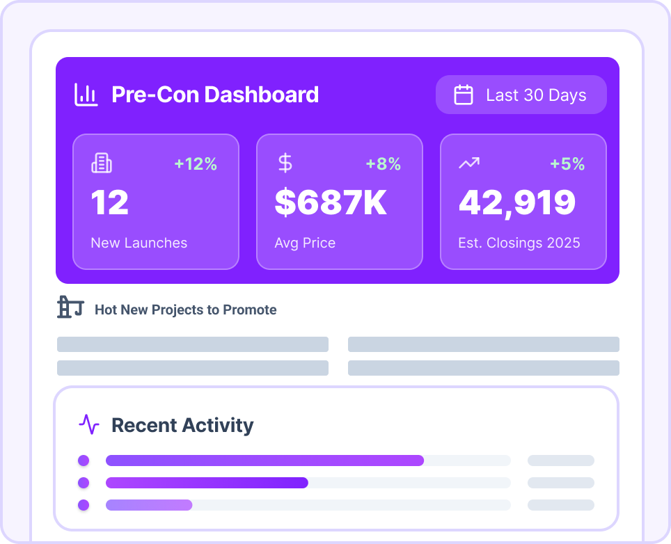 The pre-construction market moves fast, and so do we. Our database is constantly updated by a dedicated research team. When a developer changes pricing, releases a new floor plan, or updates a project's status, those changes are reflected in the API feed almost instantly.